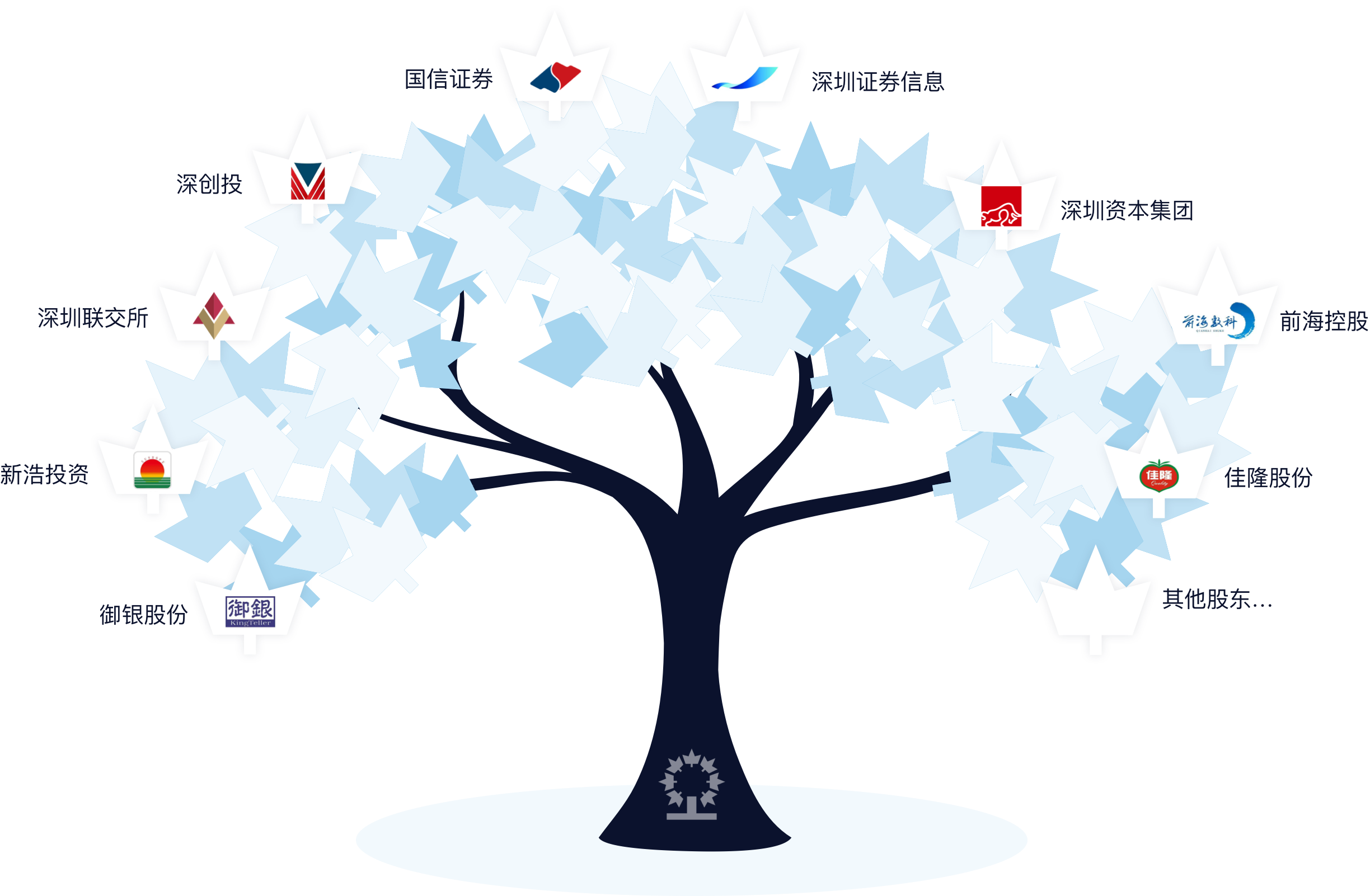 公司共有16家机构股东,主要包括国信证券、深圳市创新投资集团、深圳市资本运营集团、深圳联交所、前海控股、深圳证券信息等国有企业、新浩投资以及佳隆股份、御银股份等民营上市公司。